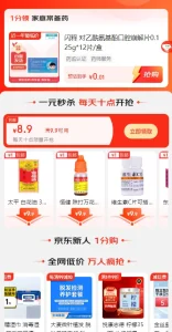 京东商城_速领3张9-8券_1元买药美滋滋(每天0点补货)
